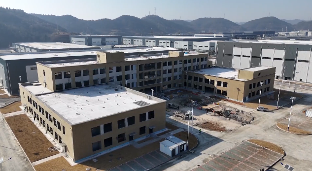 昊徽科技产业园项目位于十堰市郧阳区,2025年2月底正式动工,项目一期设计产能为4GW,是区域布局新能源储能产业的重要项目。目前,项目核心的生产区域、高标准车间等主体建筑已全面封顶,正在进行内部管线铺设、设备基础施工和洁净车间装修。一期计划于2026年6月底投产运营,将迅速形成1GWh动力电芯、2GWh储能电芯及1GW光伏组件的年生产能力,为新能源市场注入强劲的“郧阳制造”力量。