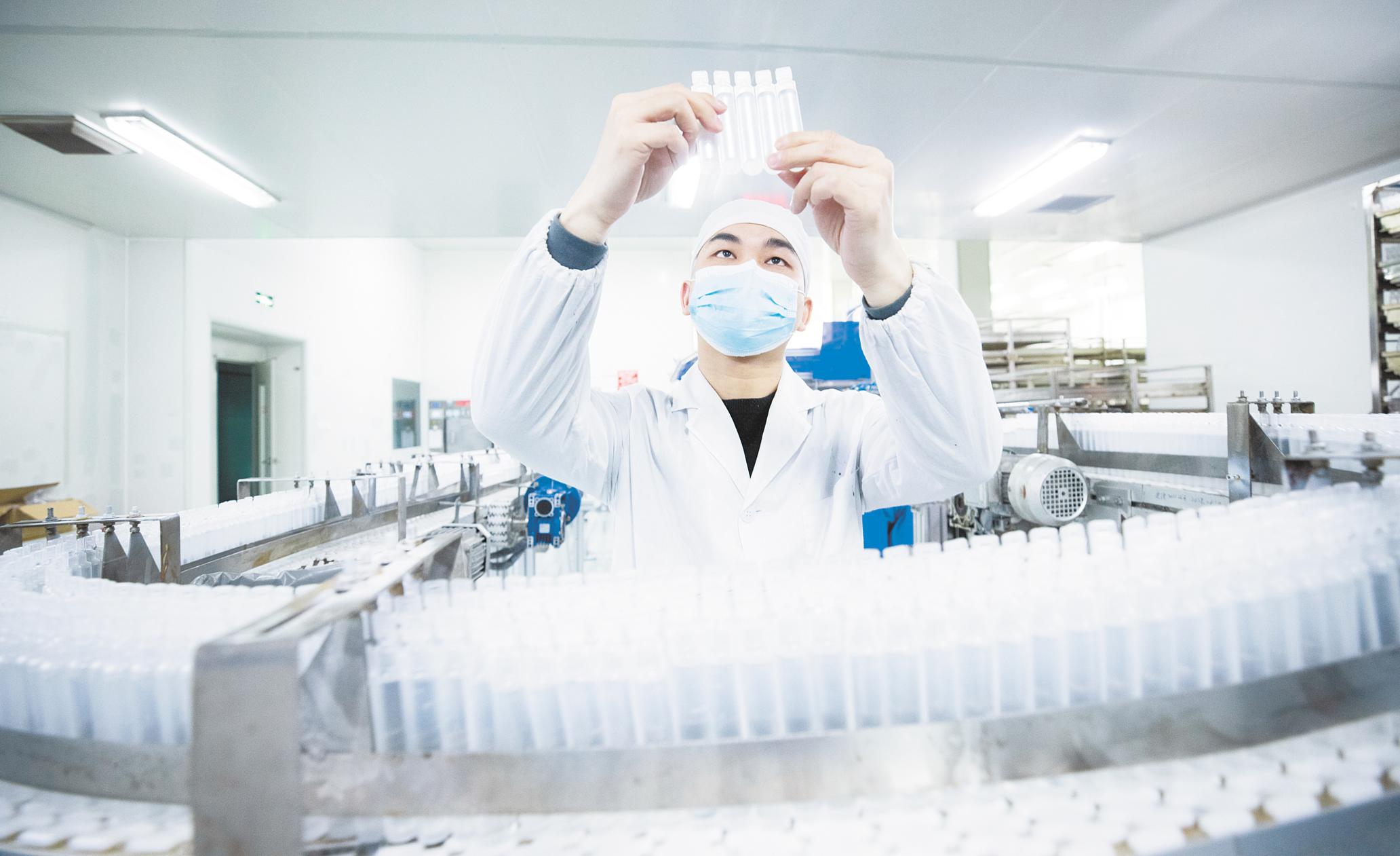 2月7日,湖北科伦药业生产车间,员工在药剂生产线上工作。预计一季度可实现工业产值1亿元。