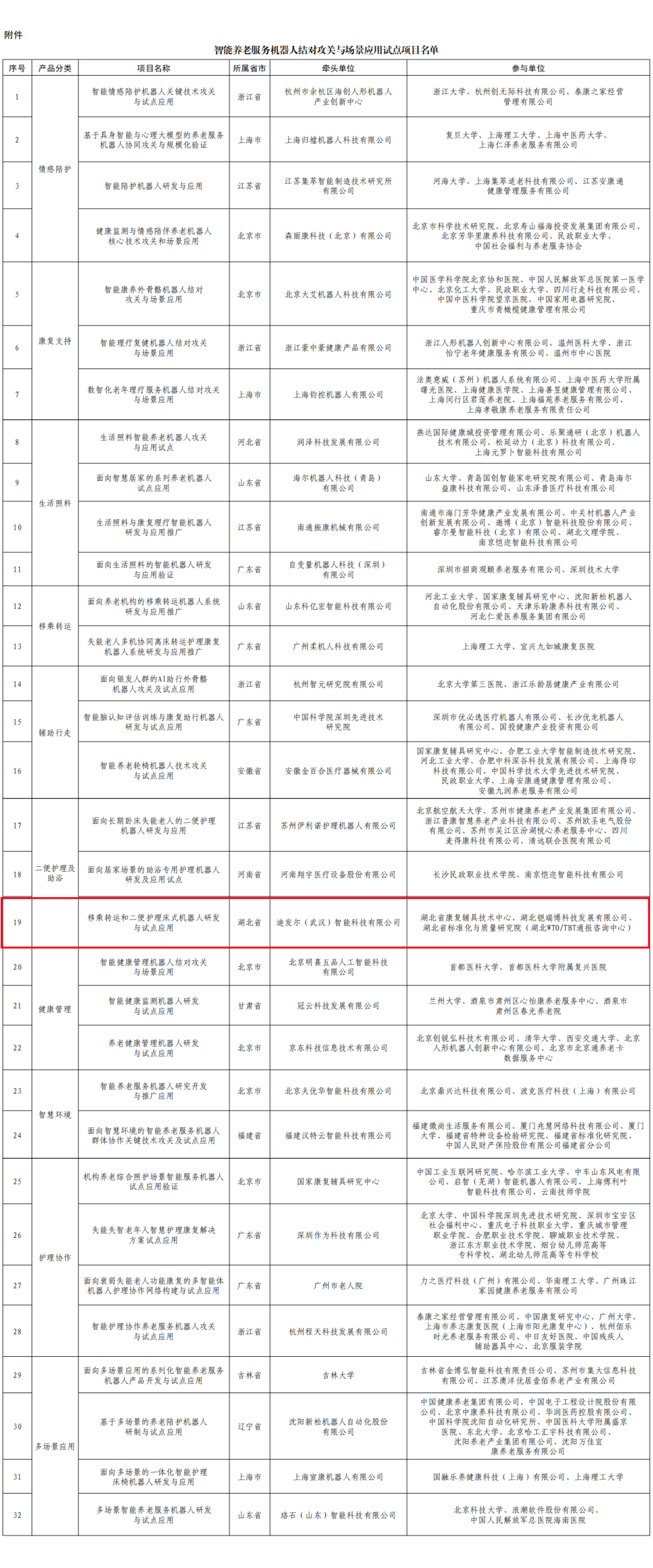 附件:智能养老服务机器人结对攻关与场景应用试点项目名单