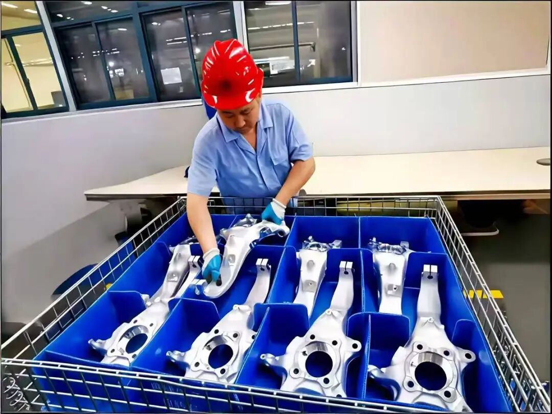 工作人员整理新能源乘用车转向节。(受访单位供图)