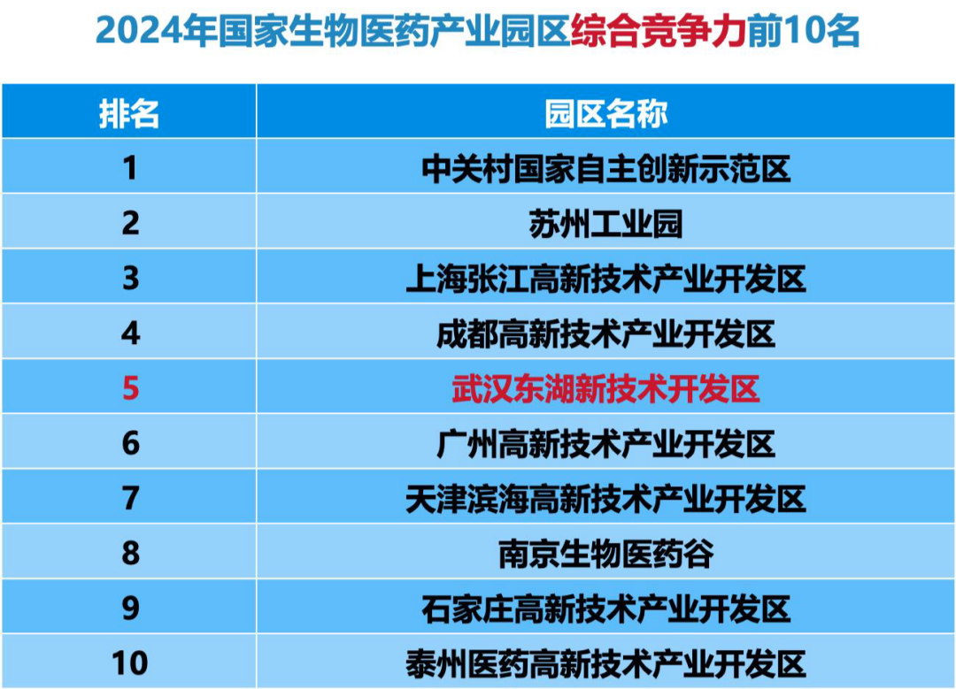 近日,2025中国生物技术创新大会在成都高新区开幕,会上发布《2024中国生物医药产业园区竞争力评价及分析报告》,武汉国家生物产业基地(即光谷生物城)综合竞争力排名升至全国第5,仅次于中关村、苏州工业园、上海张江、成都高新区,较上一年提升一位。