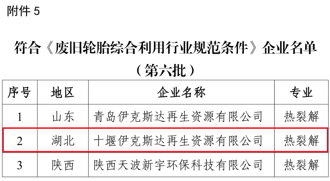 5.符合《废旧轮胎综合利用行业规范条件》企业名单(第六批)