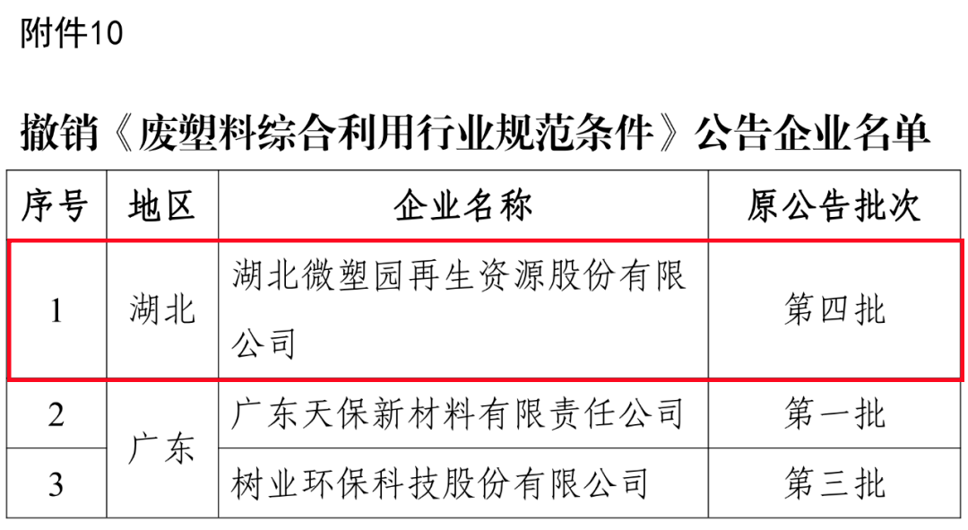 10.撤销《废塑料综合利用行业规范条件》公告企业名单