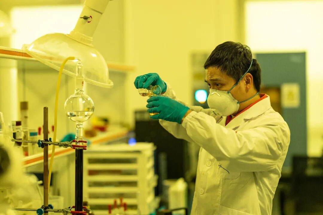 湖北三峡实验室科研人员正在从事半导体光刻胶用光引发剂试验。