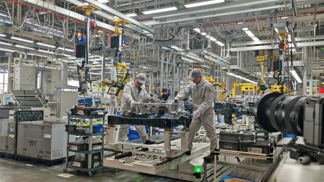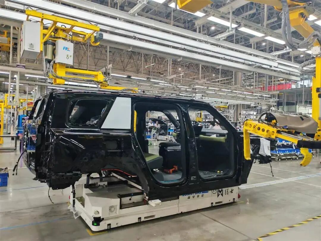 当天,记者走进猛士科技先进智造工厂,只见生产线正高速运转。机械臂精准完成每一道工序,工人们各司其职、有条不紊,整个车间一派繁忙景象。厂长陈辽介绍,工厂设计节拍为8.5JPH,这意味着大约每7分半就能下线一台整车。目前,工厂每天满负荷运转11个小时,日均产量达100台,已进入超负荷运转阶段。