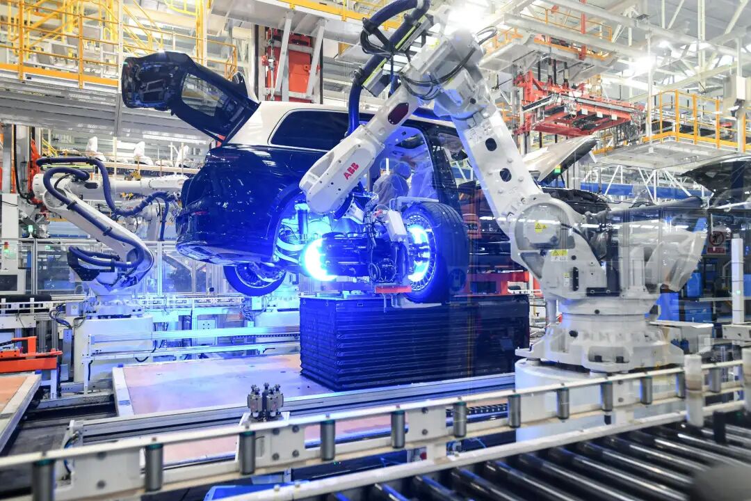 机械臂抬起,焊花在空中闪现,车身沿着总装线缓缓前行。电子显示屏上的数字不停地跳动,一辆辆新车接连驶下产线。