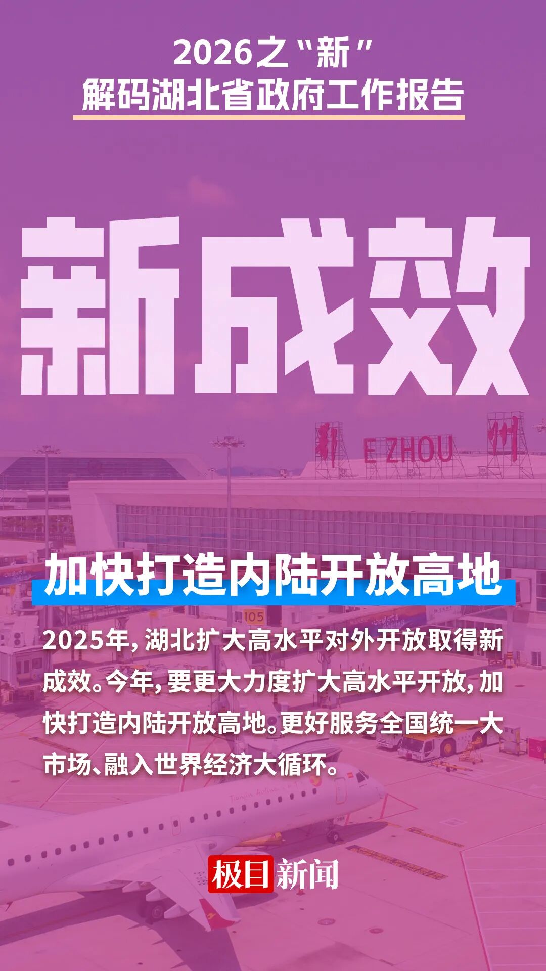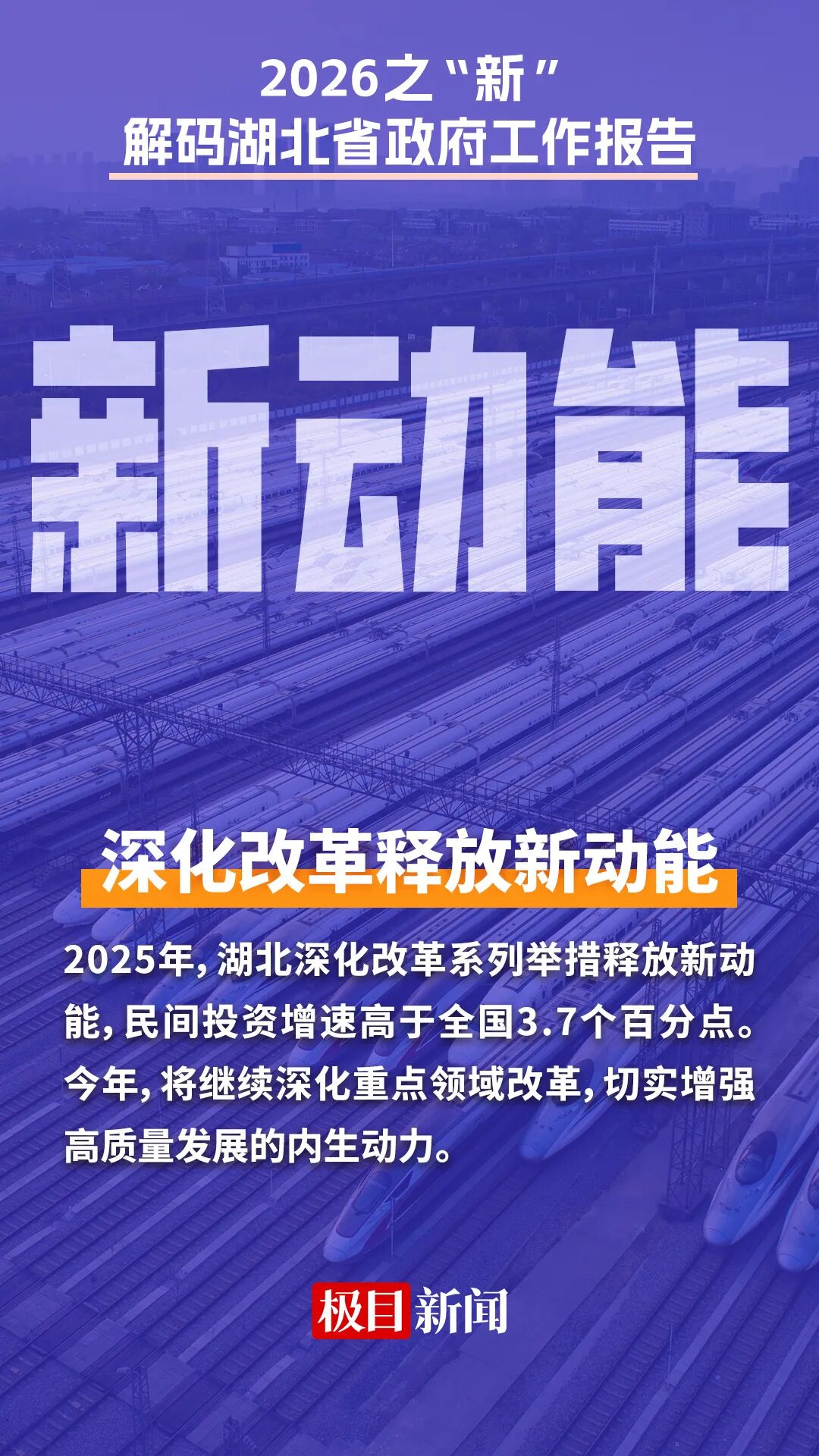 1月27日上午,湖北省第十四届人民代表大会第四次会议开幕。2026年湖北省政府工作报告出炉,通篇贯穿着醒目的“新”字。新供给、新赛道、新优势、新需求……既藏着高质量发展的核心密码,也写满了民生福祉的温暖承诺。