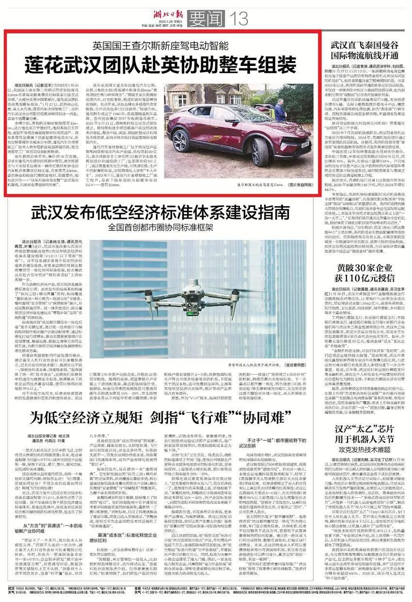 1月28日,湖北日报要闻版报道:英国国王查尔斯新座驾电动智能 莲花武汉团队赴英协助整车组装