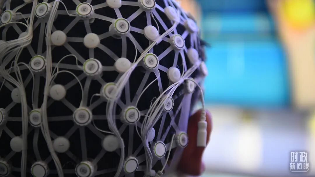 2026年1月24日,安徽省脑机接口创新发展大会现场一位穿戴脑机接口设备的体验者。