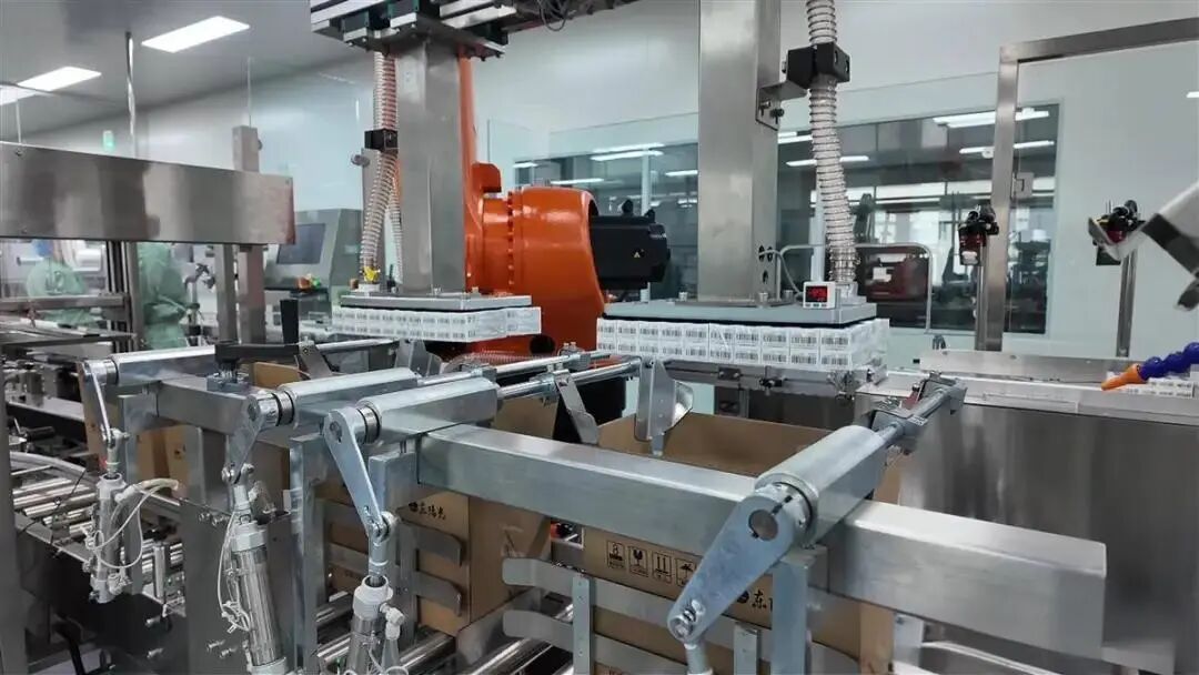 机械臂将包装好的胰岛素产品码放整齐。