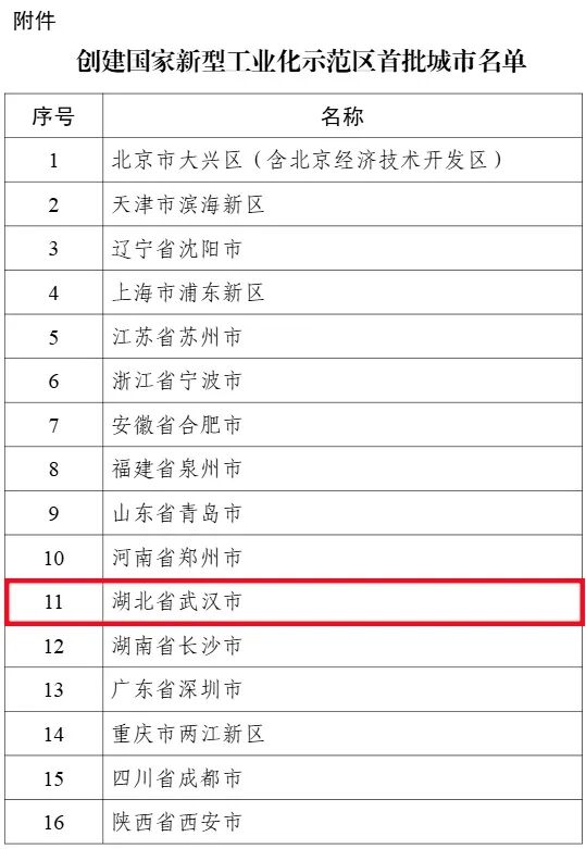 贯彻落实党中央、国务院关于加快推进新型工业化的战略部署,按照《评比表彰和创建示范活动管理办法》有关要求,经党和国家功勋荣誉表彰工作委员会办公室批准,工业和信息化部组织开展国家新型工业化示范区创建活动。依据《国家新型工业化示范区创建活动工作方案》,经省级人民政府推荐、资料审核、专家评审等程序,确定首批16个创建国家新型工业化示范区城市(以下简称创建城市),现将名单予以公布(见附件)。