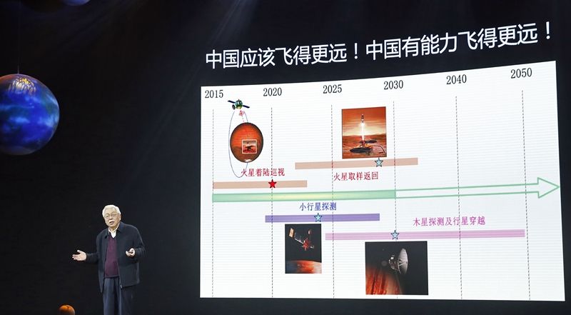 2020年1月12日,中国科学院院士、中国月球探测工程首任首席科学家欧阳自远在清华大学向青少年讲授科普知识。