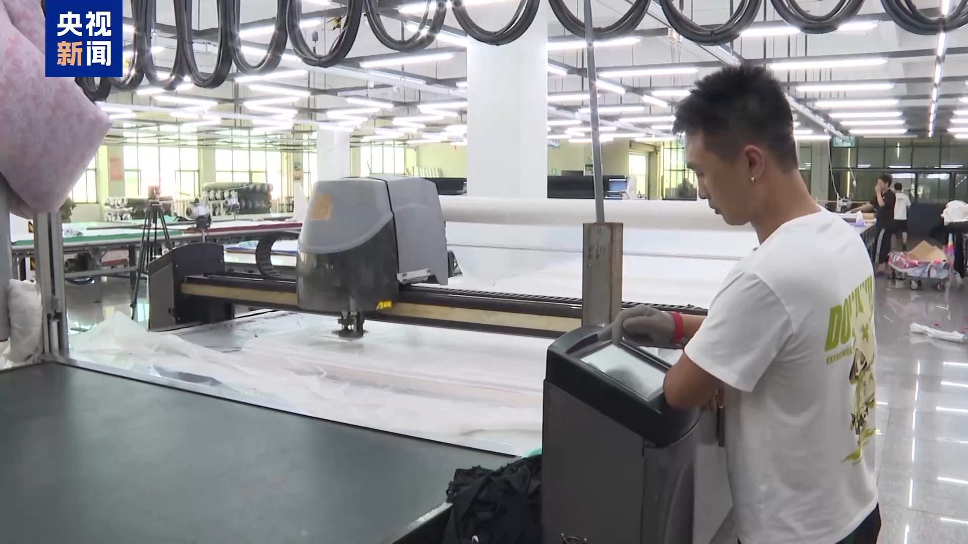 在一家纺织面料加工工厂里,一排排防晒专用纱线正源源不断地被送上织布机,经过密织、高温定型等流程,被加工成具备高倍防晒性能的科技面料。据企业负责人介绍,他们从2019年开始,对全产线进行了数字智能化升级。