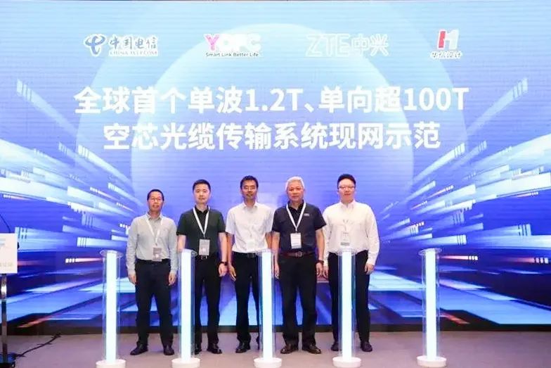 目前,“空芯光纤”已通过三大通信运营商成功进行试点实验。长飞助力中国移动在深圳至东莞的通信干线上,建立了全球首个800G“空芯光纤”传输技术试验网;与中国联通联合开展的“空芯光纤”通信传输实验,单波速率高达1.2Tbit/s,传输距离为10.2km,打破了全球“空芯光纤”传输单波速率纪录;与中国电信合作建立全球首个单波1.2Tbit、单向超100Tbit“空芯光缆”传输系统现网示范,并共同创造了“空芯光纤”系统单向实时传输容量距离积的新纪录。