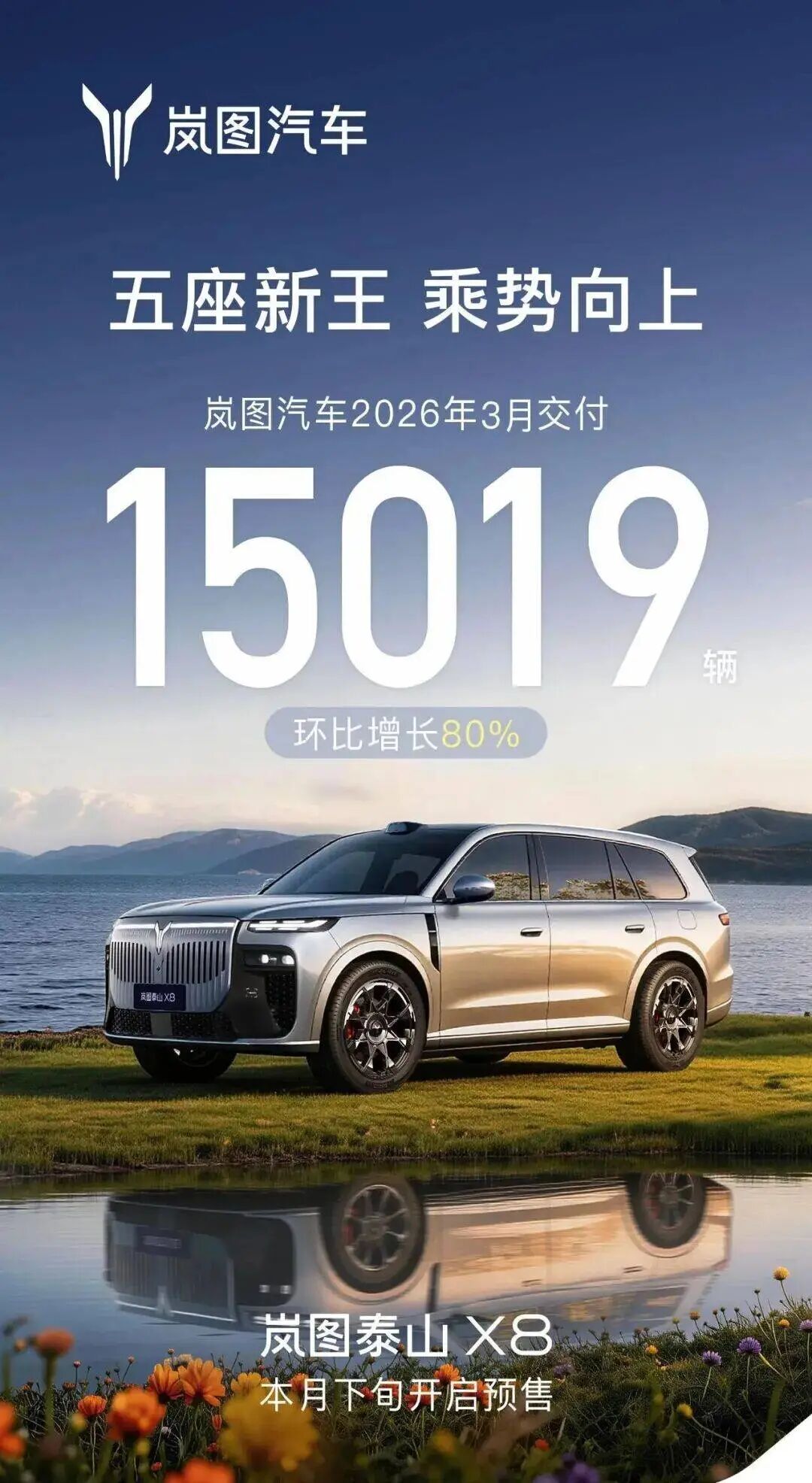 产品层面,岚图汽车密集推出多款新车,进一步引领高端新能源市场。3月10日,岚图梦想家迎来第20万辆下线,当天,岚图汽车携手华为乾崑限量推出岚图梦想家冠军版。3月17日,岚图泰山技术焕新发布会举行,“全新一代896线激光雷达旗舰SUV”岚图泰山Ultra量产交付,岚图泰山黑武士上市。3月19日,“五座新王”岚图泰山X8首发亮相,将于4月下旬开启预售。